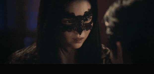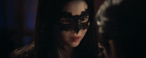 那晚她戴上了蕾丝面罩,半遮住面孔。