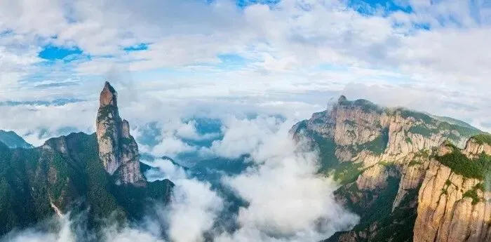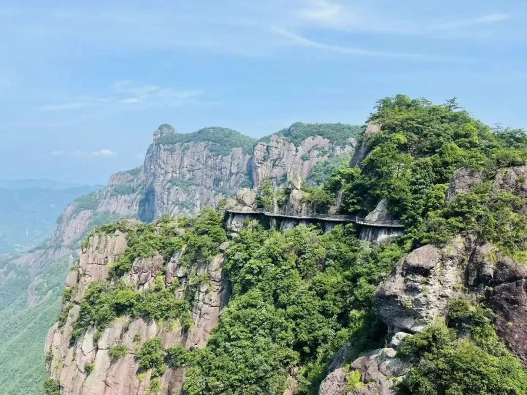 神仙居南天顶是登高打卡的好去处。登上顶峰,在南天顶上举目四望,袅袅雾霭,宛若仙境。向下俯瞰,云雾缭绕,满目苍翠。