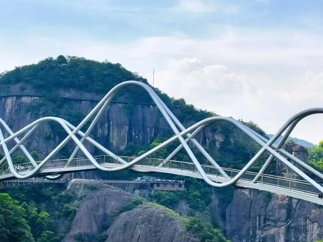 全场100米长的如意桥由北京“鸟巢”设计师之一的何云昌设计,横跨东西峡谷。造型奇特的桥身由三条交错起伏的流线桥面组成,上一层则为镂空铁板,行走其上,每一步都能让人如履薄冰。