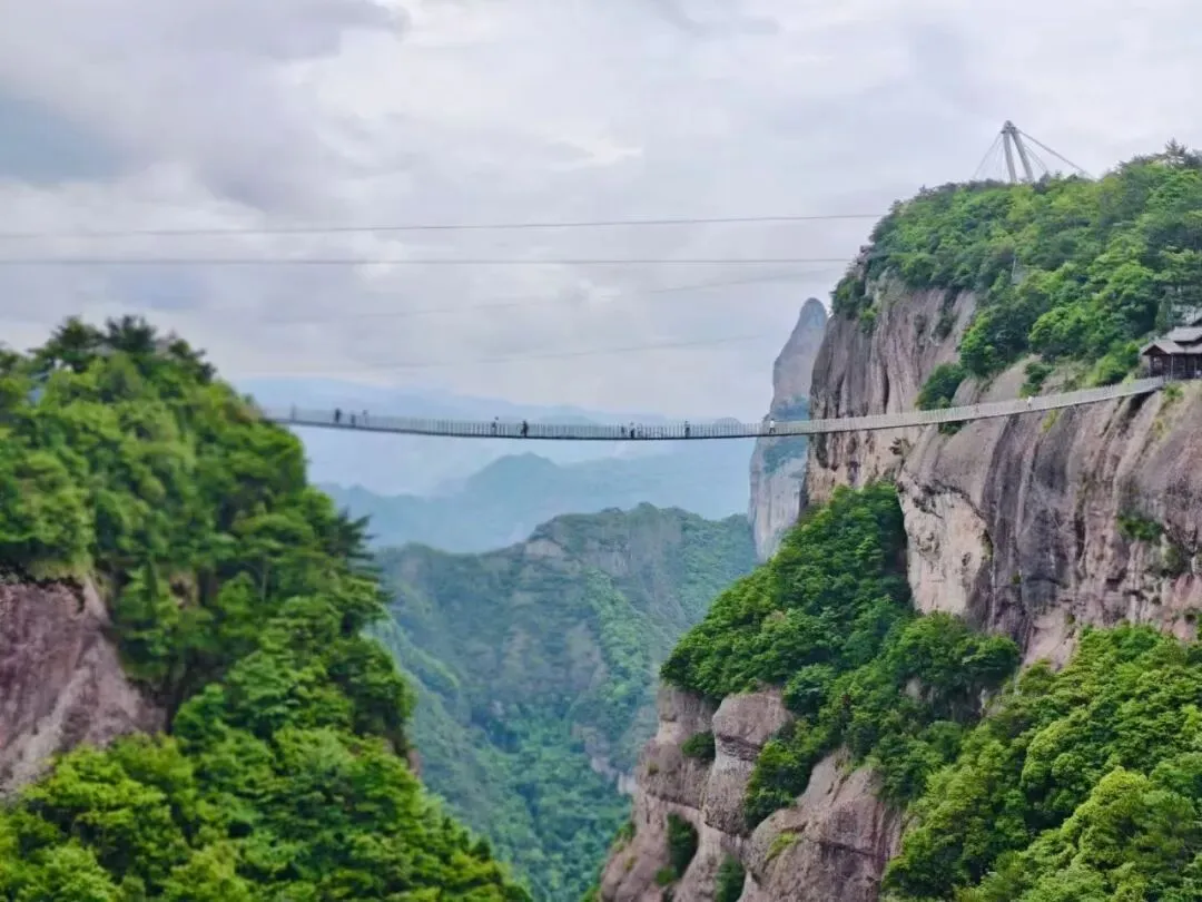 南天桥长约120米,山谷垂直落差100米。桥体由钢筋连接,天堑变坦途,情侣携手走过南天桥意喻到达幸福彼岸。走到桥中间回首可见观音峰,于南天桥双手合十默默祈祷,可心想事成。