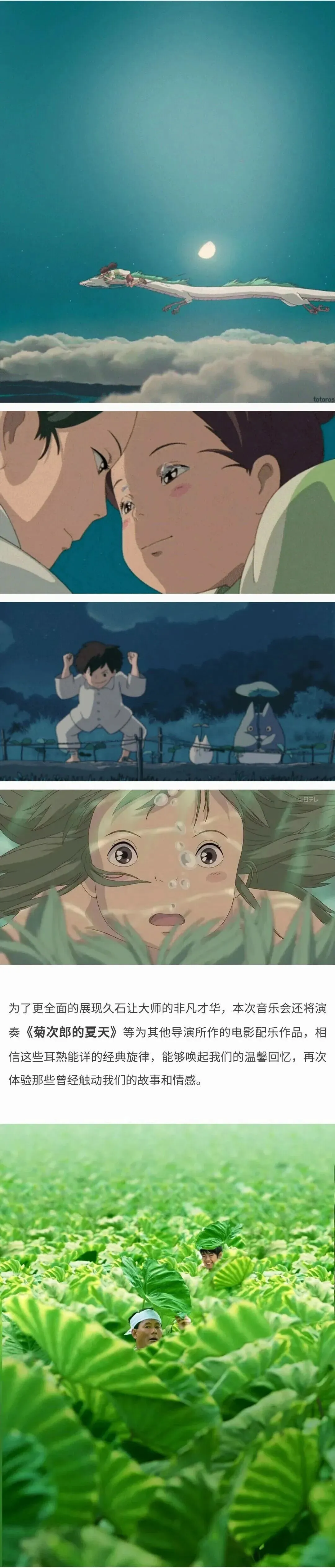 本次演出精心挑选两位大师近30年合作的经典作品,涵盖宫崎骏多部经典动画的核心配乐,每一首都是刻在DNA里的回忆杀,全程高能、无尿点!