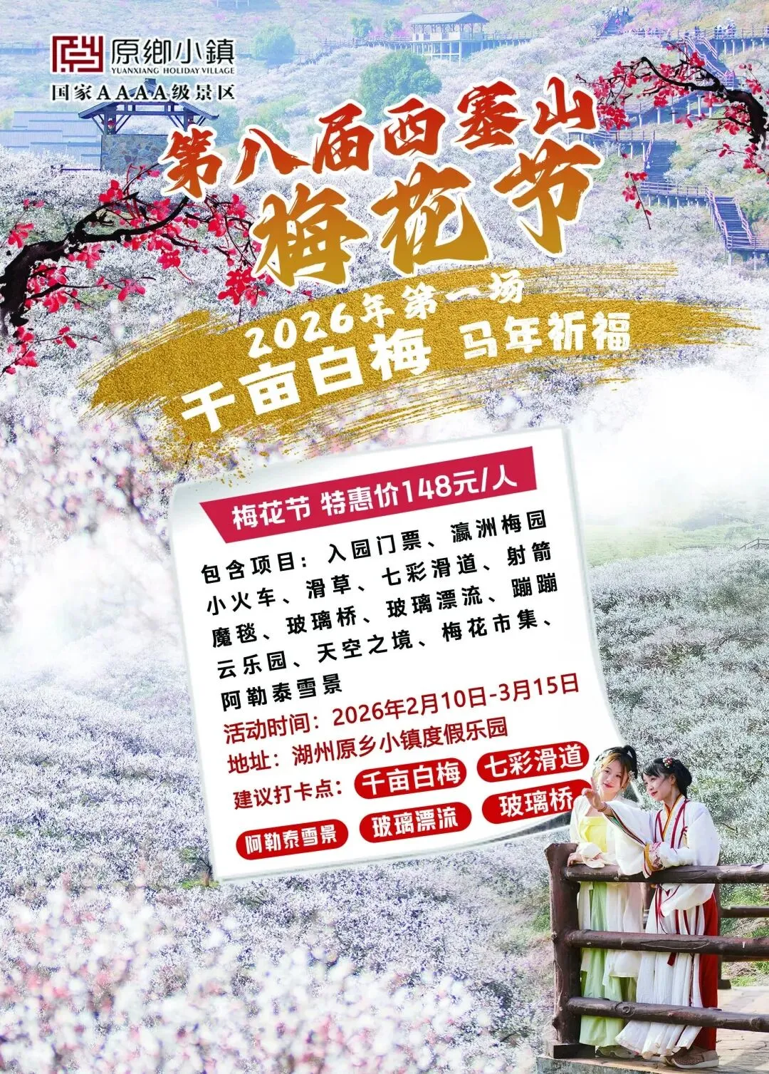 【女神节特惠168】3月8日原乡小镇千亩梅花与你共享“梅”好人生
