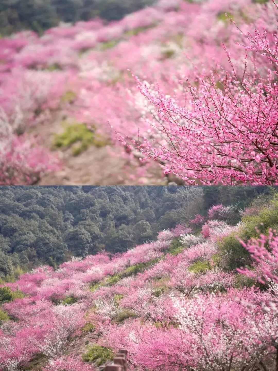 观赏地点:4.2公里原枕木栈道(可观1000亩白梅),12个观梅亭