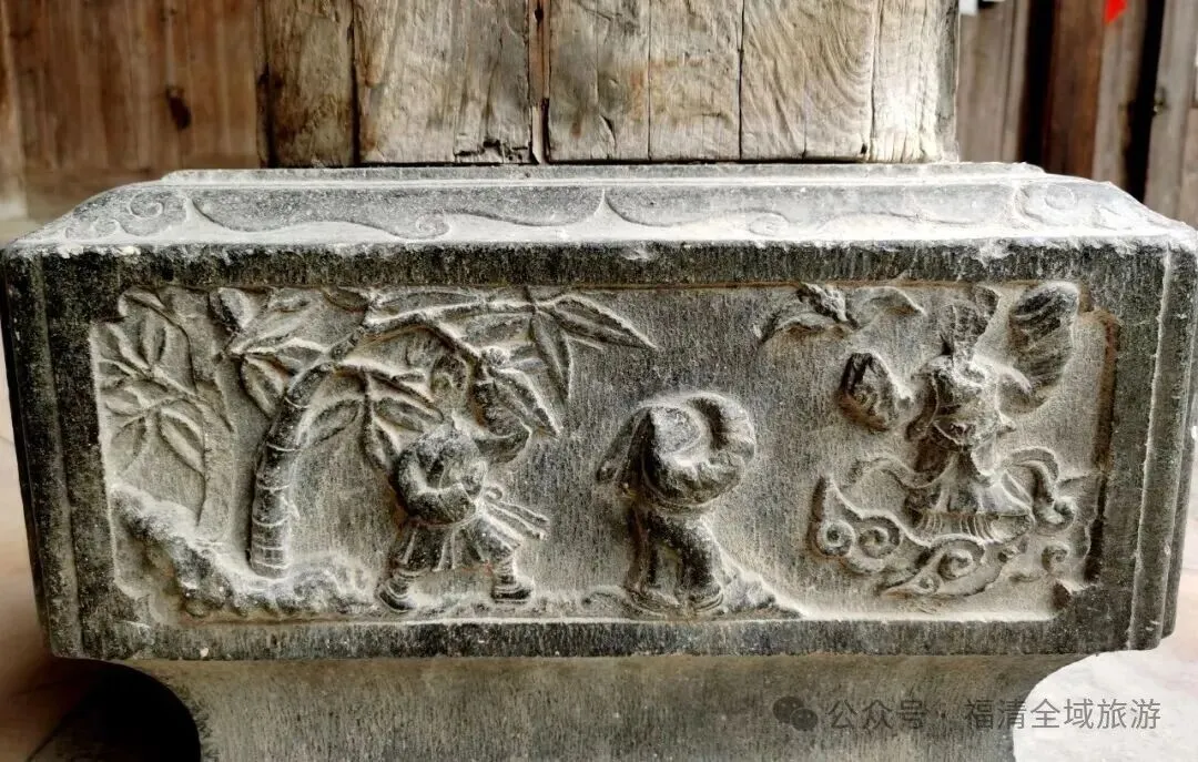 厅堂与天井间的廊道连通两侧护厝,踩在青石板上,清脆的声响回荡其间,仿佛能与百年前的古人隔空对话。主体建筑为悬山式双坡顶,一高两低的燕尾脊造型灵动,屋脊泥塑与彩绘增添层次,黑色板瓦整齐铺展,尽展古朴雅致的闽东古建筑之美。
