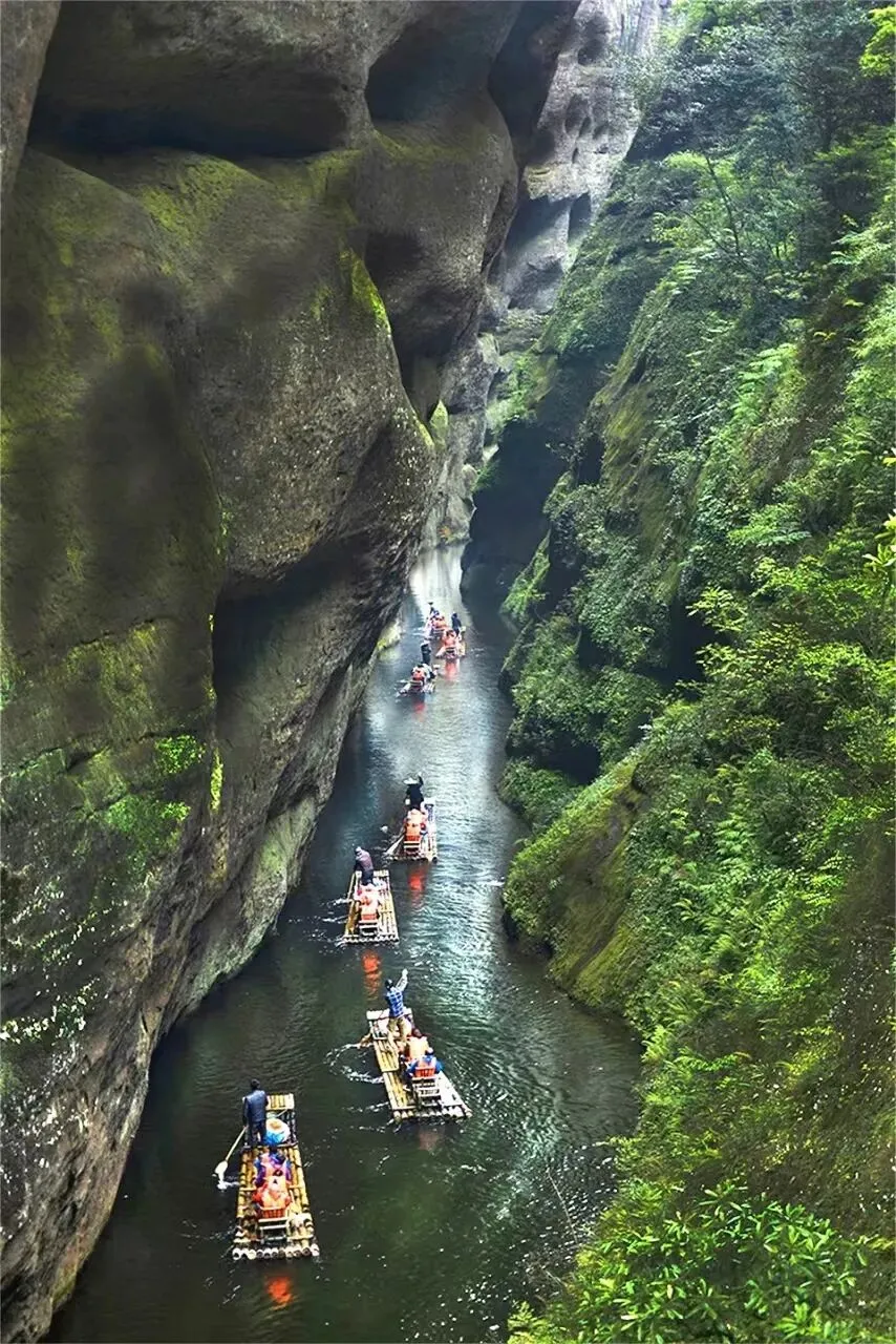 早餐后,前往泰宁【九龙潭景区】(车程约1小时,游览约2小时)。九龙潭景区位于泰宁世界自然遗产、泰宁世界地质公园核心区,因有九条山泉溪涧汇聚而成的泉潭而得名。景区方圆15平方千米,融合了“湖、溪、山、谷、岩、峰、沟”的精华,分水上游览和陆地栈道游览。游览方式丰富,可乘坐竹筏(已含)穿越“中国最长的水上一线天”、“水上隧洞”,去俯瞰水的清丽,也可以信步抵达“水天玻璃栈道”,去体验玻璃栈道的水、秀、幽、奇的峡谷情怀。境内植被茂盛、峡谷纵横、丹霞绝色;尤以山水交融、谷静清幽、野性十足而闻名。四季花卉各不相同,春季的映山红、苦苣苔,夏季的野百合,秋季的黄花菜,冬季的红叶枫,均给人以不同的视觉美感。景区一年四季水源不断,老少皆可游,晴雨皆可游。被誉为“水上丹霞的精品”、“丹霞山上微缩明珠”。