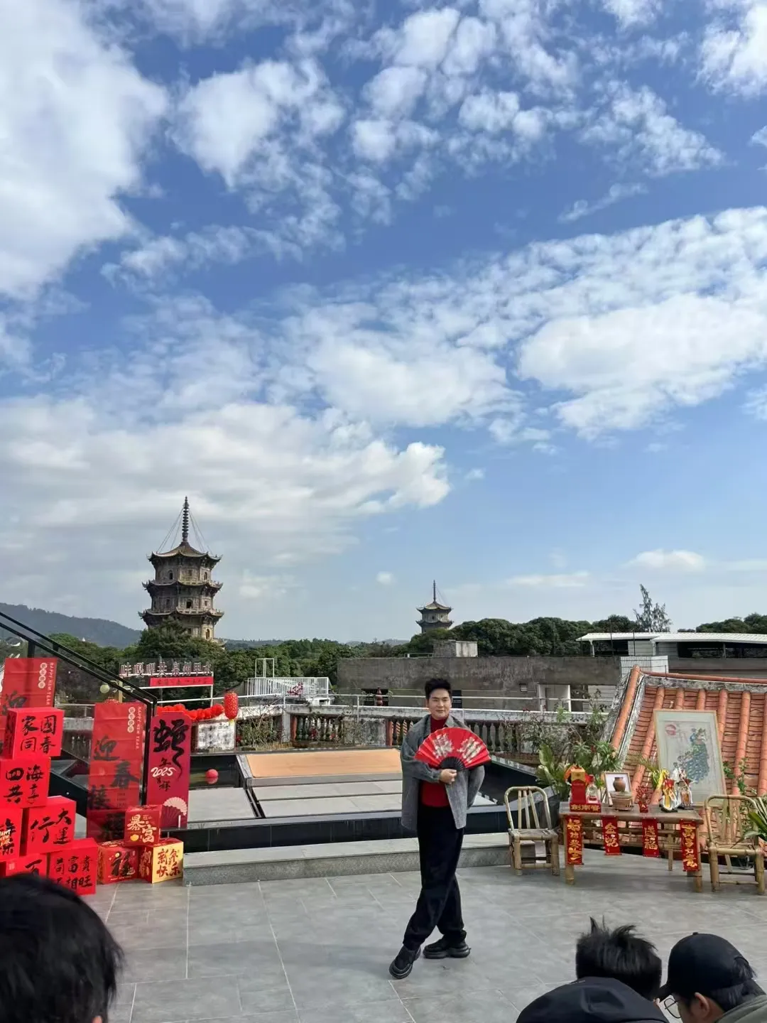 7FUN天台望瞰近半古城,红砖厝顶为主,横搭起异国特色的罗马柱与拱圆舞台,与闽南文化碰撞包容的风格同频。这里东望开元、镇国仁寿,北有教堂礼颂钟响。7FUN天台上,一览无余的城区各种文化、信仰的碰撞交糅、市井烟火气,就像东西线上时间划过的朝起夕红,面向古城的未来,传承、传城文化艺术任重道远。“火天大有·七番文化艺术复合展”展览作品品类的多样,包括书画、雕塑、影像、环保装置、植物装置、非遗、动漫、书展、行为艺术、书展、非中实掌中木偶剧团等。