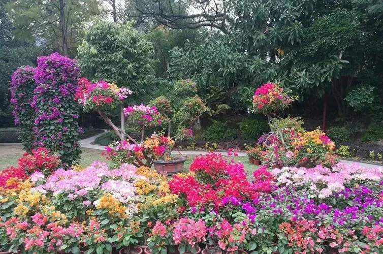 在一株三角梅上同开多种花色的花朵