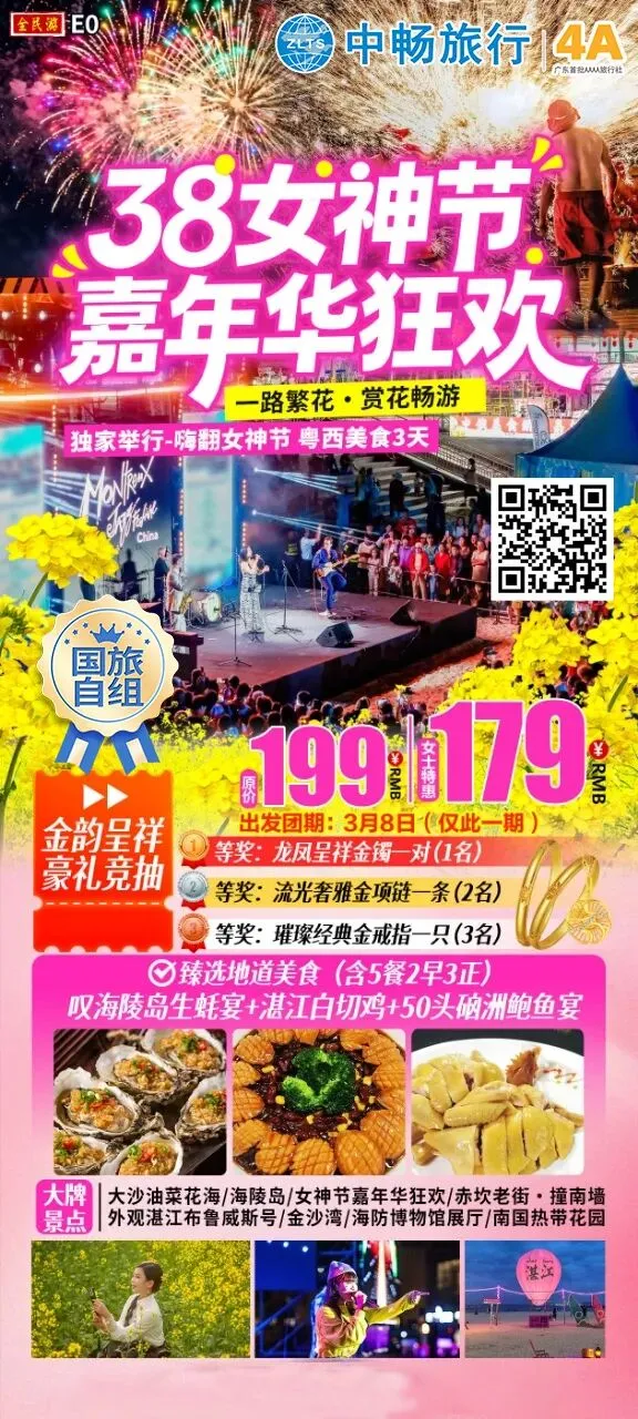 【国旅自组】粤西 3 天游|女神节嘉年华 • 特邀神秘嘉宾现场助唱 & 观非遗大型打铁花秀 & 万人篝火晚会K歌狂欢 & 更有大奖等你带回家 ~