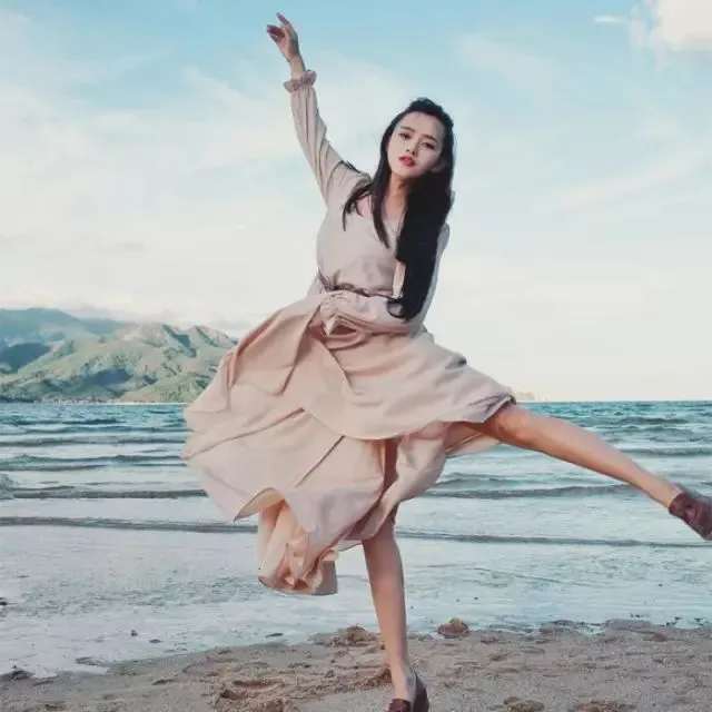 长胳膊长腿的你,也不妨来点文艺范儿。背靠大海,即使不是科班儿出身,也能拍出舞蹈家的气质。