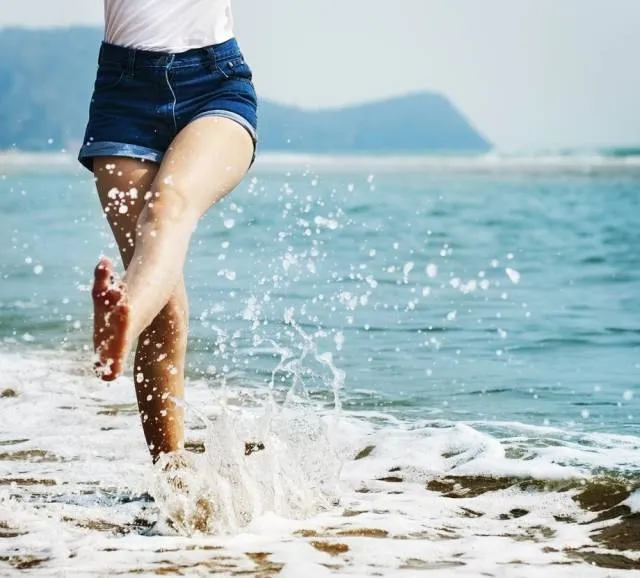 又或者随脚踢出一朵浪花,轻松悠闲的海边style跃然眼前。