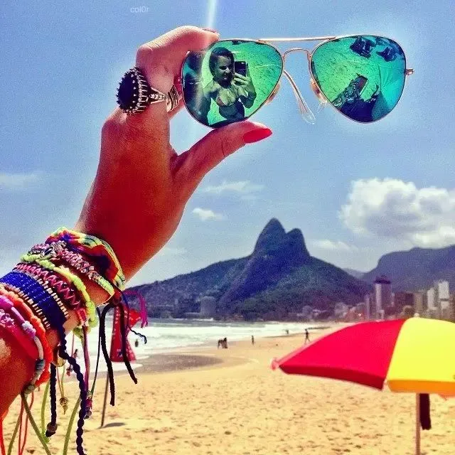 墨镜也可以摘下来,利用镜面来拍摄炫酷的照片。应时应景,十分美丽。