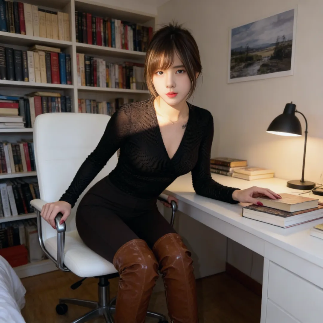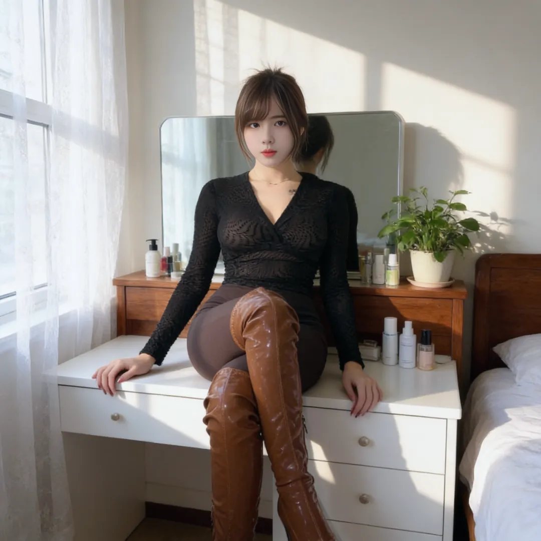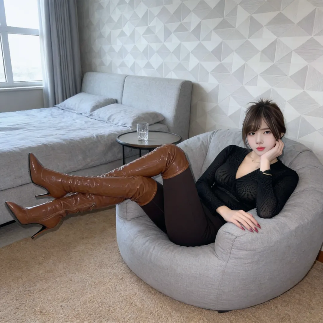 当所有靴子都回到原位时,卧室又恢复了宁静。但那些留在羊绒地毯上的褶皱,镜框边缘的光斑,以及空气中若有若无的皮革香气,都在诉说着这场私密秀场的余韵。长靴从来不只是鞋履,它是身体的延伸,是情绪的容器,更是每个女孩在卧室里写给自己的情书。