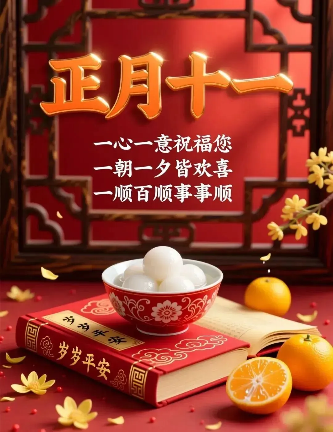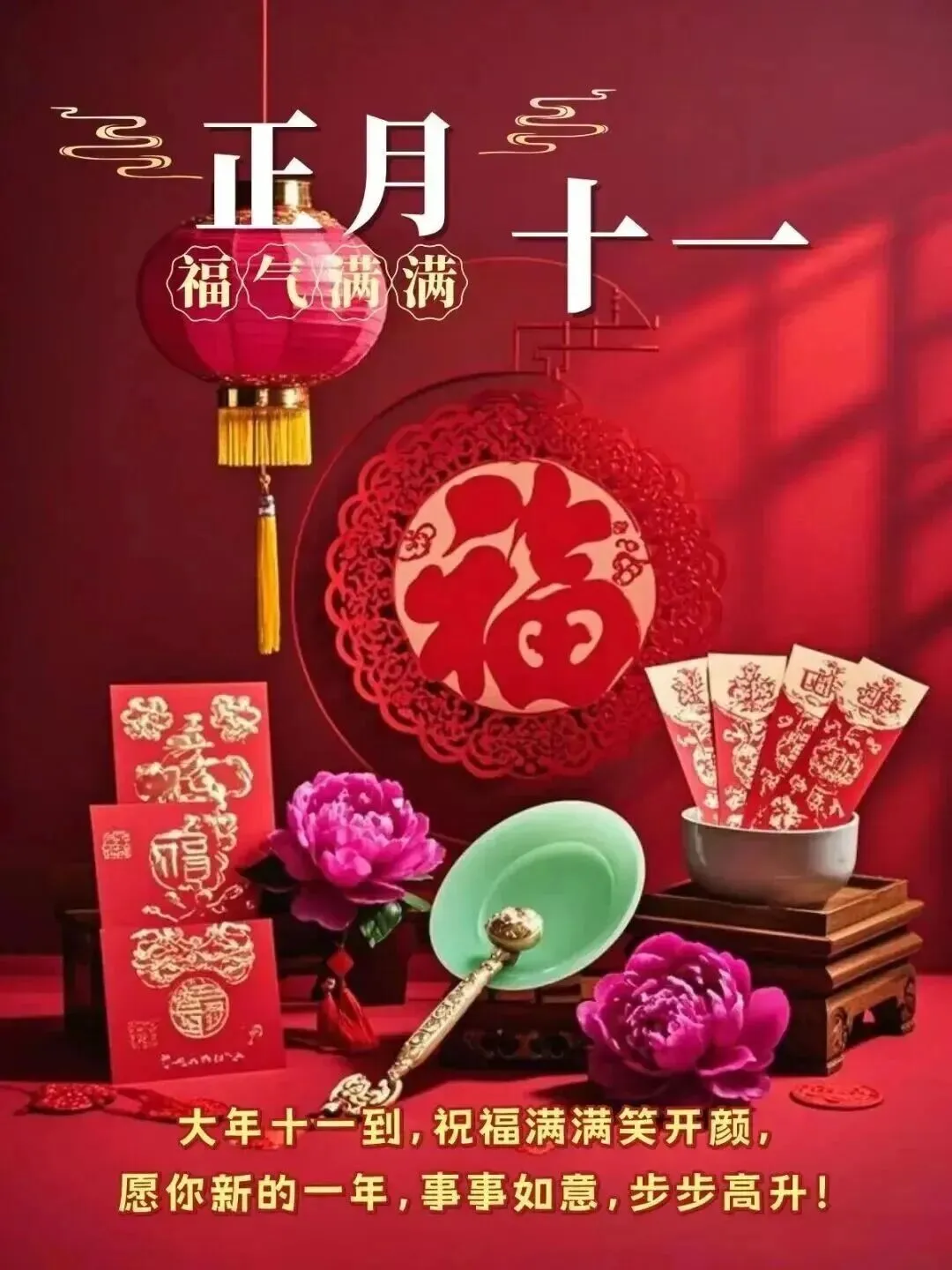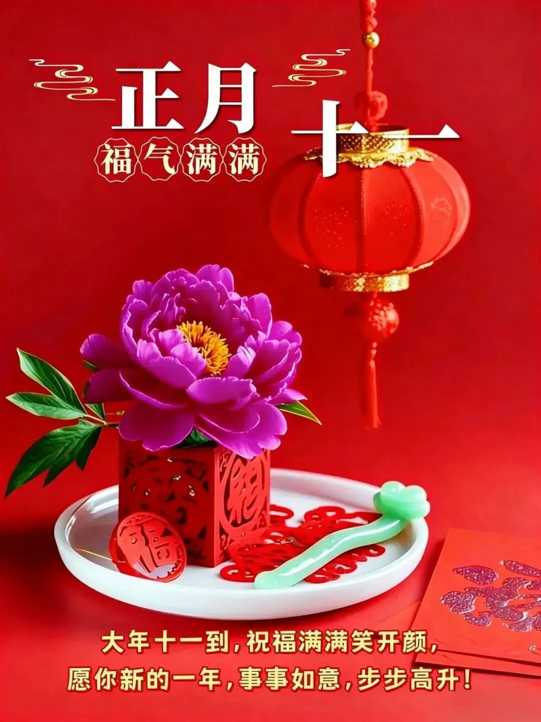 2月27日-正月十一漂亮图片祝福语+新年的第十一天,愿新的一年,诸事顺遂,喜乐安康!