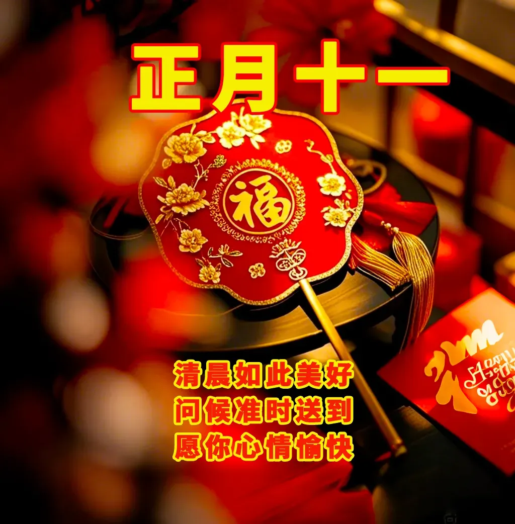 8. 正月十一🧨,祝愿你福星高照🌟,好运连连🍀!愿你:烦恼一扫光😫,快乐不间断😄,幸福不打烊🥰,财源滚滚来💰,日子越过越精彩,生活越来越顺心🙌!