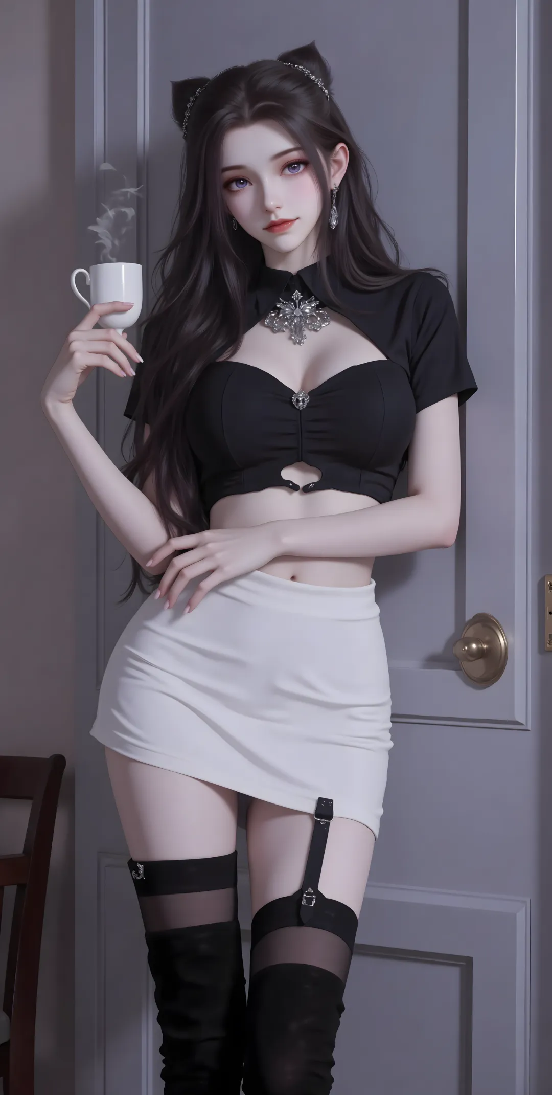 肌肤依旧是冷调瓷白,却多了几分历经日晒雨淋的健康光泽,不再是温室花朵般的脆弱。五官的轮廓更加清晰立体,眉眼间的冷冽更甚,却不再是单纯的年少孤僻,而是经历过生死后的冷静与果决。墨色的眼眸更加深邃,眼底藏着伙伴间的羁绊,藏着对戴沐白的复杂情感,也藏着对胜利的坚定渴望。动用武魂时,头顶会浮现出一对小巧的黑色猫耳,身后会生出蓬松的黑色长尾,整个人的气场瞬间变得凌厉,速度与力量感扑面而来。