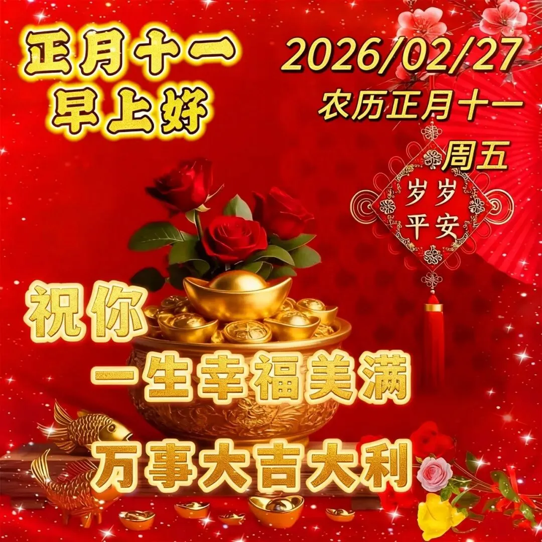 今天是正月十一,一心一意吉祥日,一心一意祝福你,年年都如意,岁岁皆平安,2026平安喜乐,无病无灾,事事顺利!