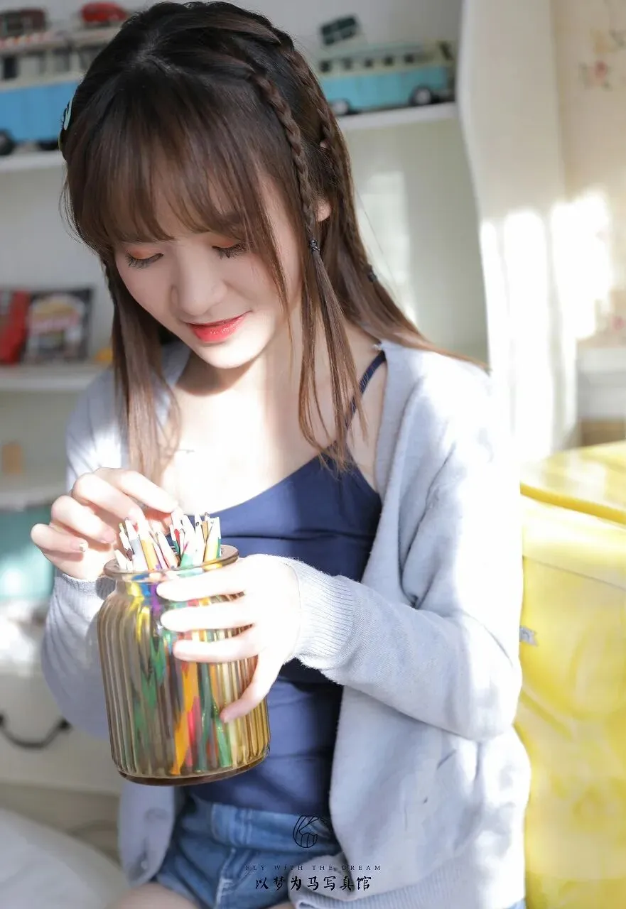 或许,她正回忆着某个温馨的瞬间。也许是童年时与小伙伴在田野间追逐嬉戏的欢乐场景,阳光洒在她们的笑脸上,无忧无虑的笑声回荡在空气中;也许是与家人围坐在一起,共享晚餐的温暖时刻,那弥漫在空气中的饭菜香气,和家人关切的话语,成为了她心中最珍贵的回忆。又或许,她正憧憬着未来的美好。想象着自己在一个阳光明媚的午后,坐在窗边,手捧一本喜爱的书籍,沉浸在文字的世界里;或是踏上一段充满未知的旅程,去领略不同地方的风土人情,感受大自然的壮丽与神奇。浅灰色的针织开衫,不仅仅是一件衣物,更像是她内心状态的写照。灰色,是一种中性而柔和的颜色,它既不张扬,也不沉闷,恰到好处地展现出少女的内敛与温柔。针织的纹理细腻而温暖,仿佛在诉说着一种平淡而又真实的幸福。在这个快节奏的时代,人们总是追求着时尚与潮流,而她却选择了这样一件简约舒适的开衫,或许这正是她对生活的一种态度——追求内心的平静与满足,不被外界的喧嚣所干扰。