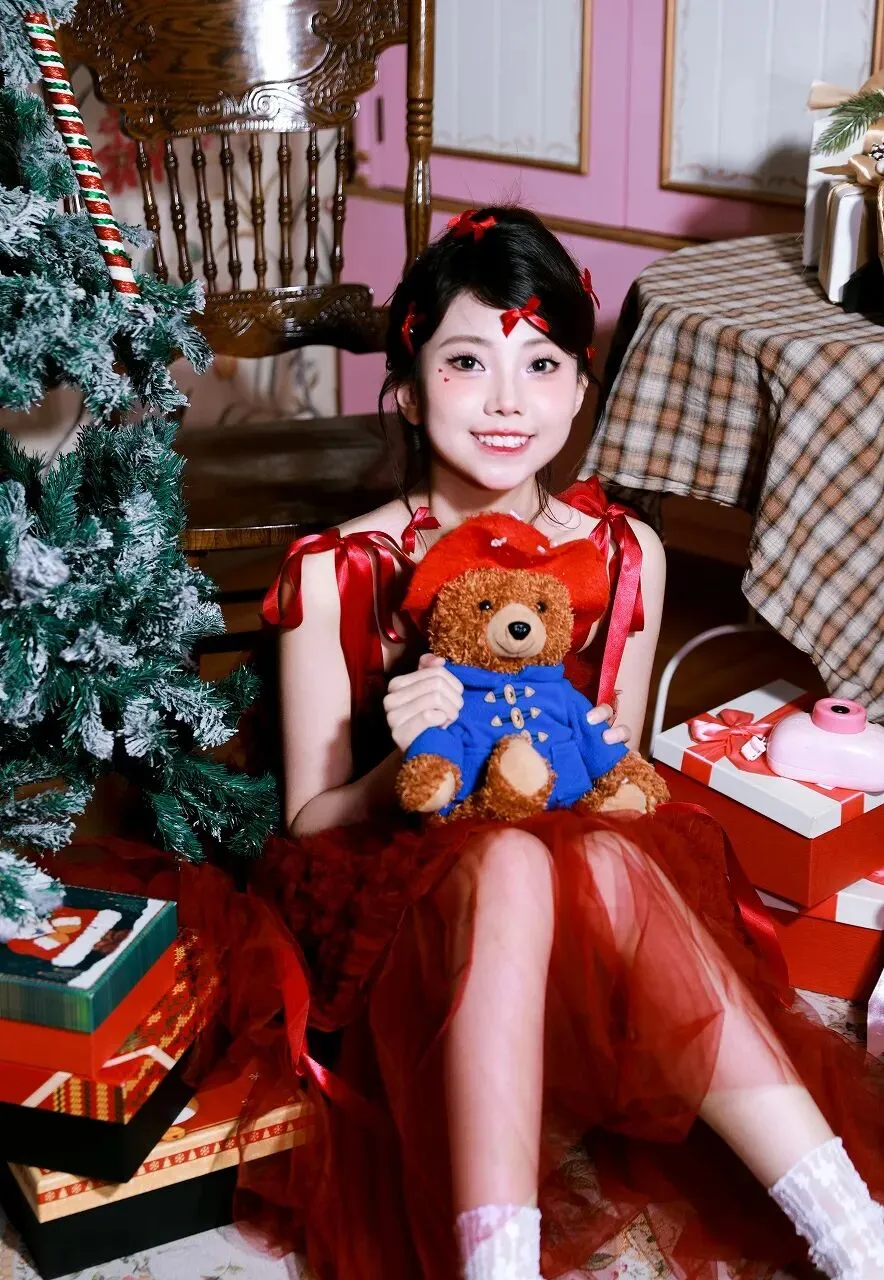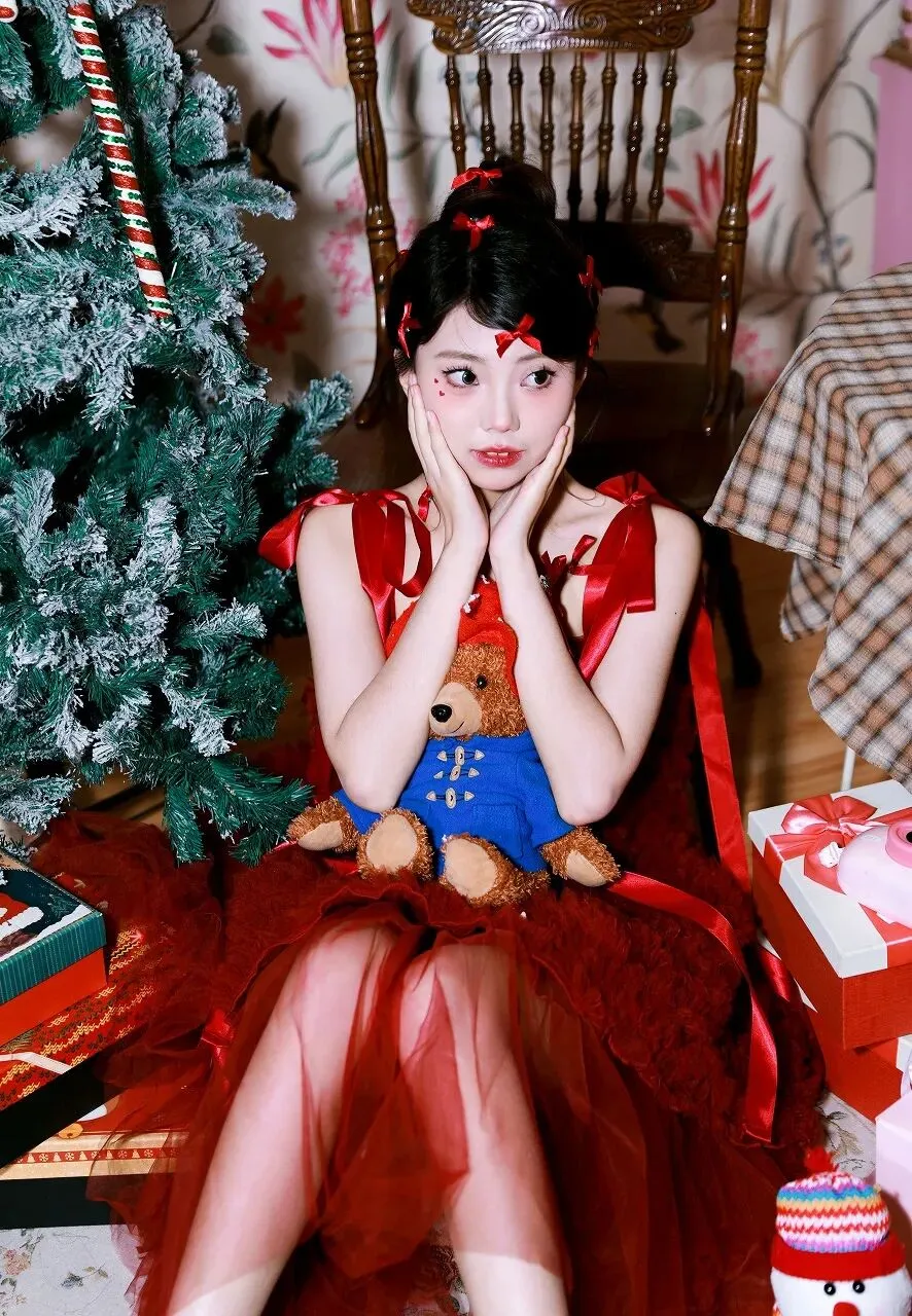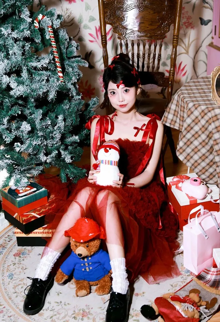 她的穿搭充满了节日的元素。红色,作为圣诞节的主色调,象征着喜庆与吉祥。纱裙的轻盈质感,为节日增添了一份浪漫与梦幻。白色蕾丝袜的搭配,既纯洁又可爱,与红色形成了鲜明的对比,更加突显了少女的青春活力。她脚边的雪人玩偶,头戴彩色帽子,笑容可掬,为整个画面增添了一份童趣与欢乐。在这个快节奏的时代,圣诞节成为了人们放松身心、享受生活的好时机。我们总是忙碌于工作和生活的琐事,很少有时间能够像这位少女一样,全身心地投入到节日的氛围中。而她,用她的方式提醒着我们,生活需要一些仪式感,需要一些欢乐与浪漫的时刻。在圣诞节这个特殊的日子里,我们可以放下所有的烦恼与疲惫,与家人朋友一起,享受这份温馨与快乐。让我们跟随红衣少女的脚步,走进这个充满欢乐与奇迹的圣诞节。让我们像她一样,怀揣着对生活的热爱与对未来的期待,迎接新的一年的到来。愿我们都能在这个节日里,收获满满的温暖与幸福,让这份节日的喜悦永远留在我们的心中。