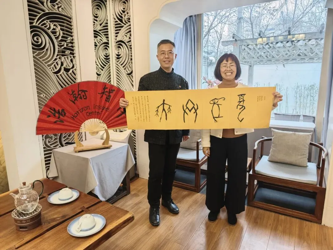 上图:常惟璞先生为浩瀚智库“南亚读书会”创作的甲骨文书法“龙象共舞”。
