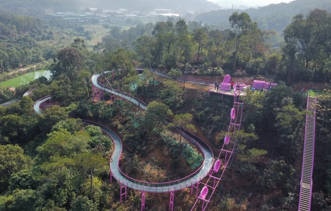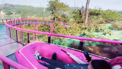 绝对不能错过,全长400米,盘踞在山野丛林, 惊险刺激的「空中玻璃水滑道」九曲十八弯,360°回转造型设计,感受真正的架空悬高穿过丛林,越过树梢。
