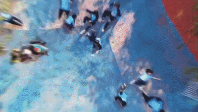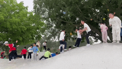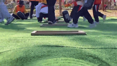 即使没有水也依旧好玩到爆!宝贝们需要快速通过板桥、爬跃多个充气路障到达终点才算闯关成功,和同学一起比一比谁先通关抵达终点吧!