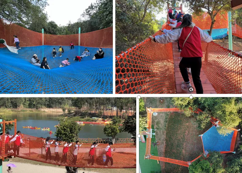 高空悬挂的绳网,让你在一个安全的环境下体验冒险带来的欢乐,在玩的过程中不断的挑战自己、相信自己!全新的冒险方式!