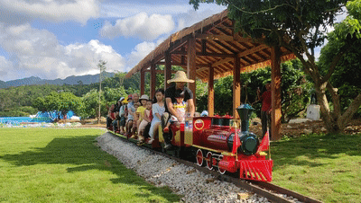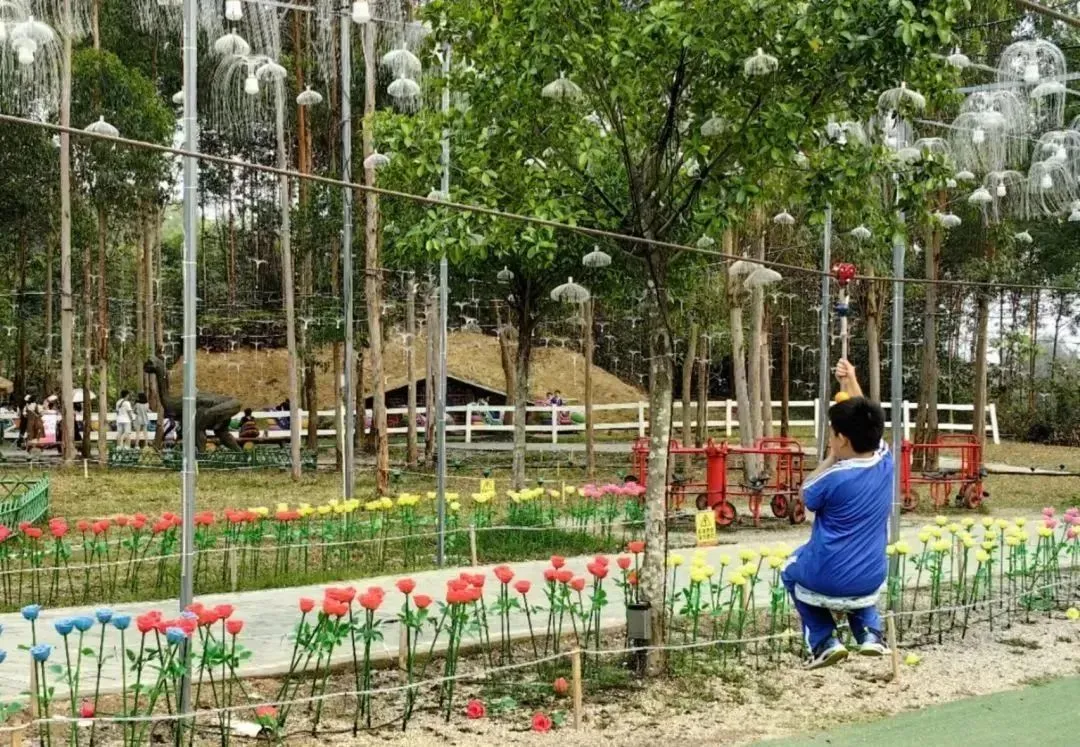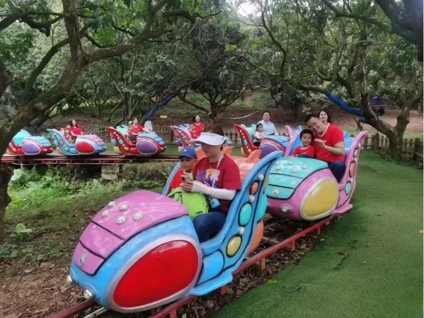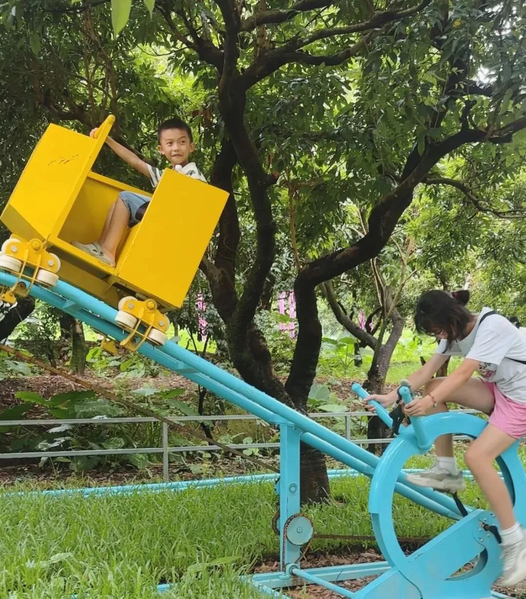 小朋友也能玩的过山车,驶上小铁轨穿越丛林间,变身“小飞侠”!萌趣的车子造型,绚丽的色彩,成为万绿丛中一道靓丽的风景。