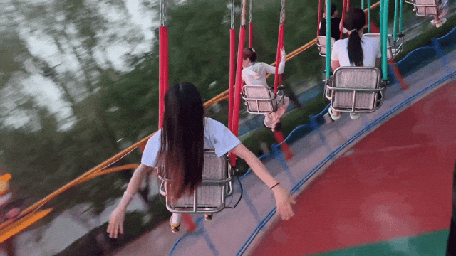 摇头飞椅,是翱翔半空的浪漫狂欢!座椅随转盘缓缓升空,伴着轻快旋律旋转起伏,风拂过发梢,脚下风景渐远。双手轻握铁链,身体随飞椅轻轻摆动,像被风托起的飞鸟,每一圈转动都满是自由与惬意,快乐也随之飘向云端。