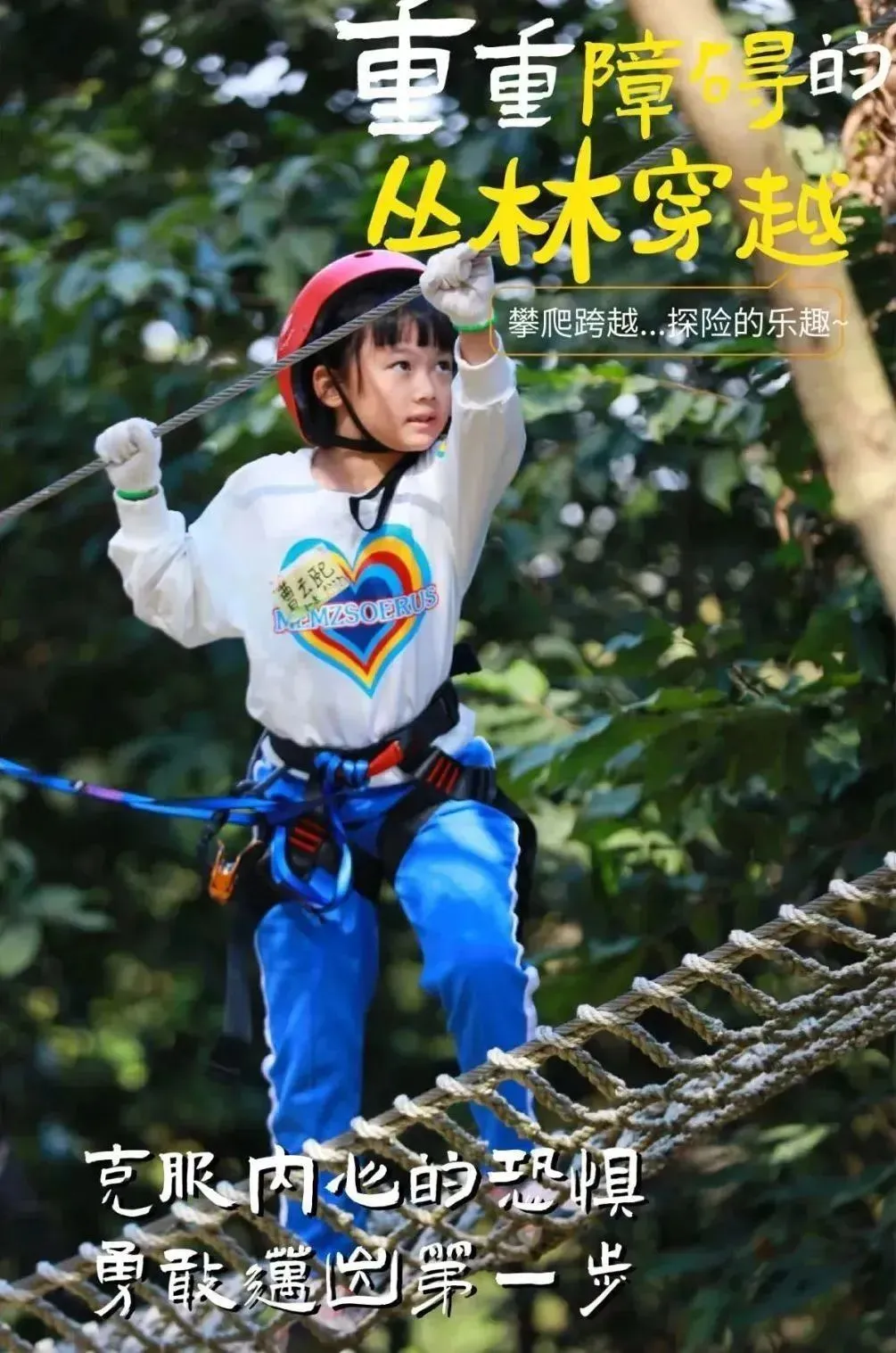挑战丛林穿越运动是一项集冒险、运动、娱乐、挑战于一体的高级户外运动项目,又被称为是“勇敢者的游戏”。(送给1.2米以上的小孩,原价45元)