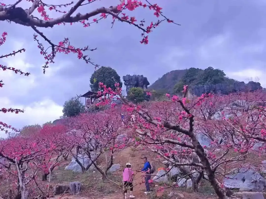13:00 游玩桃花山,上坪桃花漫山遍野一片绯红,大家尽情拍照。