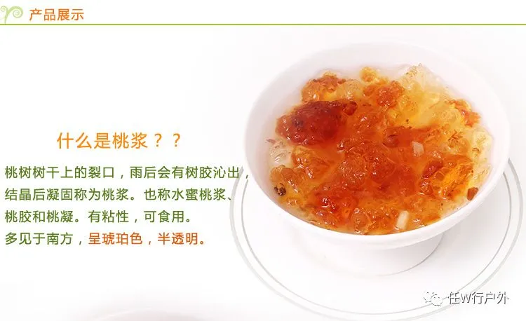天然野生桃胶:  传统手工劳作,人工采集、自然晾晒、人工挑选、去除杂质