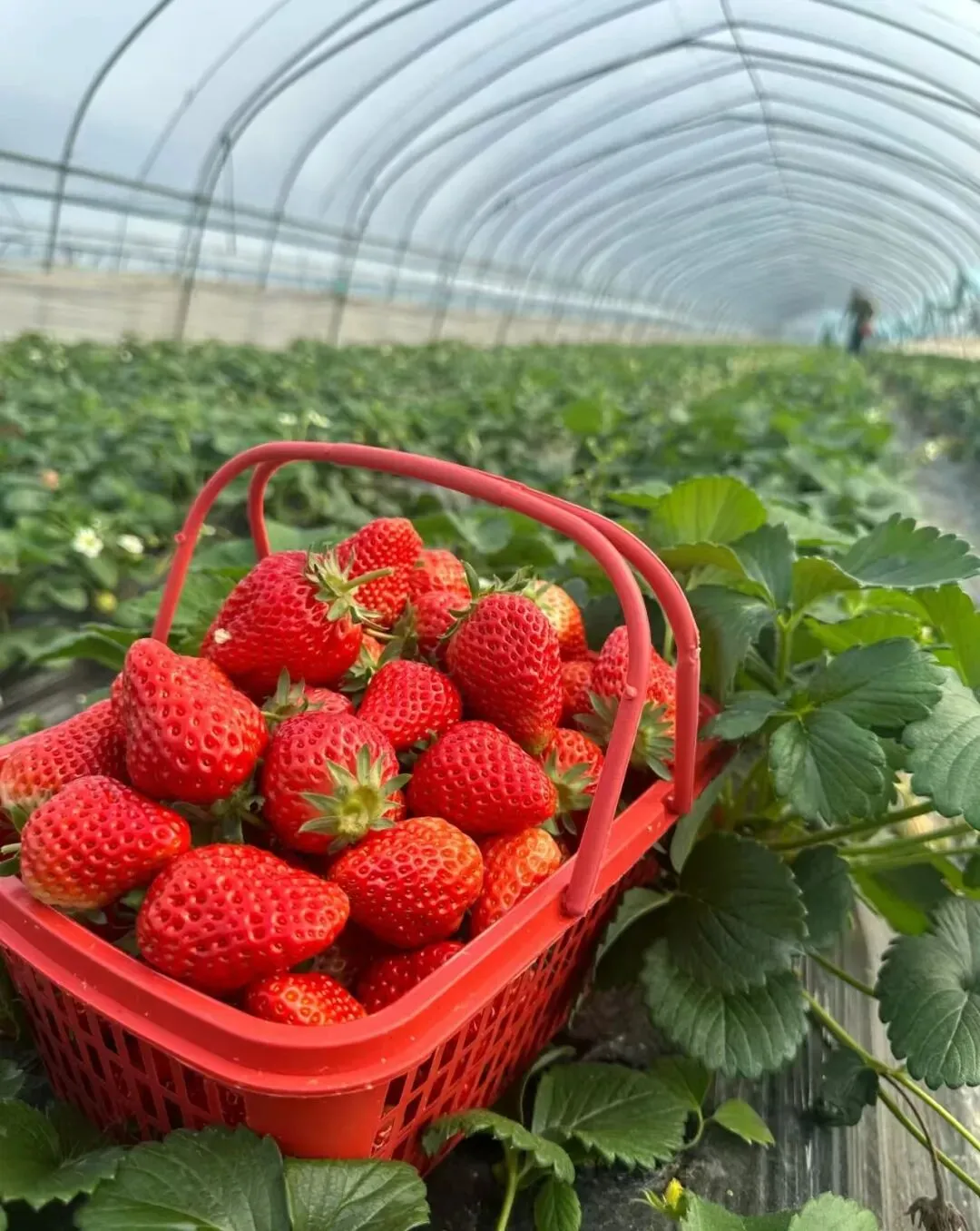 ~春日限定甜品补给站,钻进暖融融的草莓大棚,亲手摘下带着白霜的红宝石,一口咬下爆汁清甜。