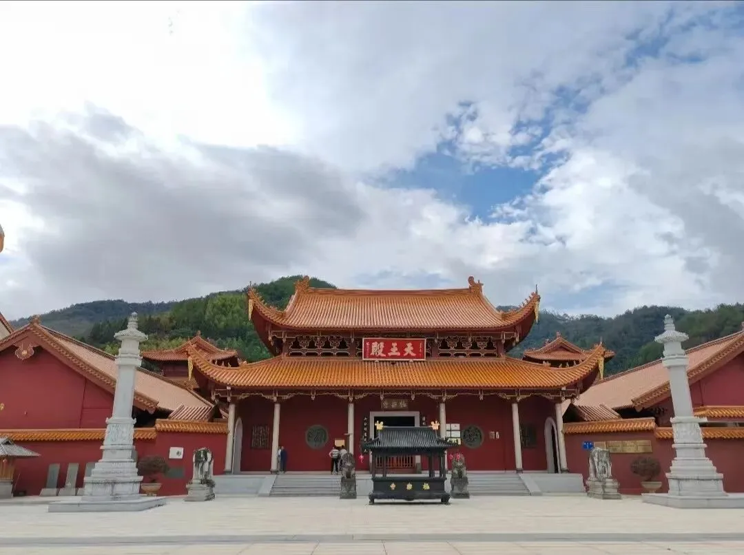 千年古刹古田极乐寺,位于古田县翠屏湖畔,倚山傍水,环境清幽,是中国近现代爱国高僧、中国佛教协会首任会长圆瑛法师在家乡唯一中兴的一所道场。极乐寺始建于唐天宝元年(742年),曾经是历史上“福建兵变”十九路军抵御蒋军的指挥部,1932年毁于战火,1937年经圆瑛法师募缘重建。寺门“得到此中真极乐,不知何处是西天”对联,为圆瑛法师墨迹。极乐寺由大雄宝殿、天王殿、祖师殿、伽蓝殿、三圣殿、放生池等组成,宏伟壮观。