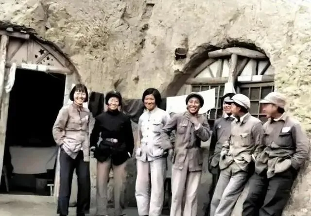 还有女干部们 , 站在土窑洞前拍合照。 你猜怎么着 , 有穿阔腿裤的 , 有穿直筒裤的 , 放到今天也不过时。 国难当头 , 这些姑娘放下安稳的日子跑到黄土高坡来了 , 为的是什么?