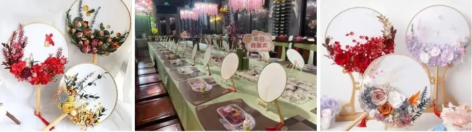 取天然干花,缀古典团扇。在花香与绢面的交融中,亲手创作独一无二的春日雅礼,致献温柔坚韧的她。