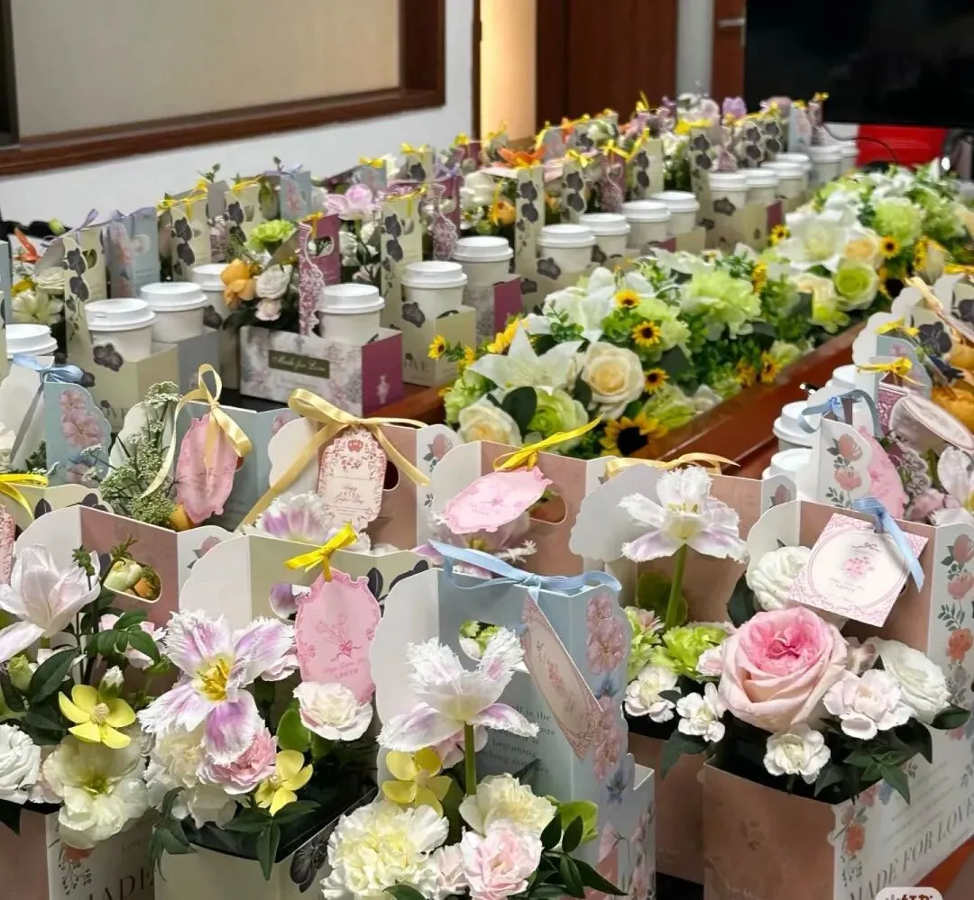 材料包要精致。别用廉价的塑料包装。用素雅的牛皮纸、麻布或定制礼盒分装。除了主花材,额外配好丝带、别致的装饰卡片、甚至一小份下午茶点。让客户打开材料包的瞬间,就发出“哇”的惊叹,觉得这钱花得真值。