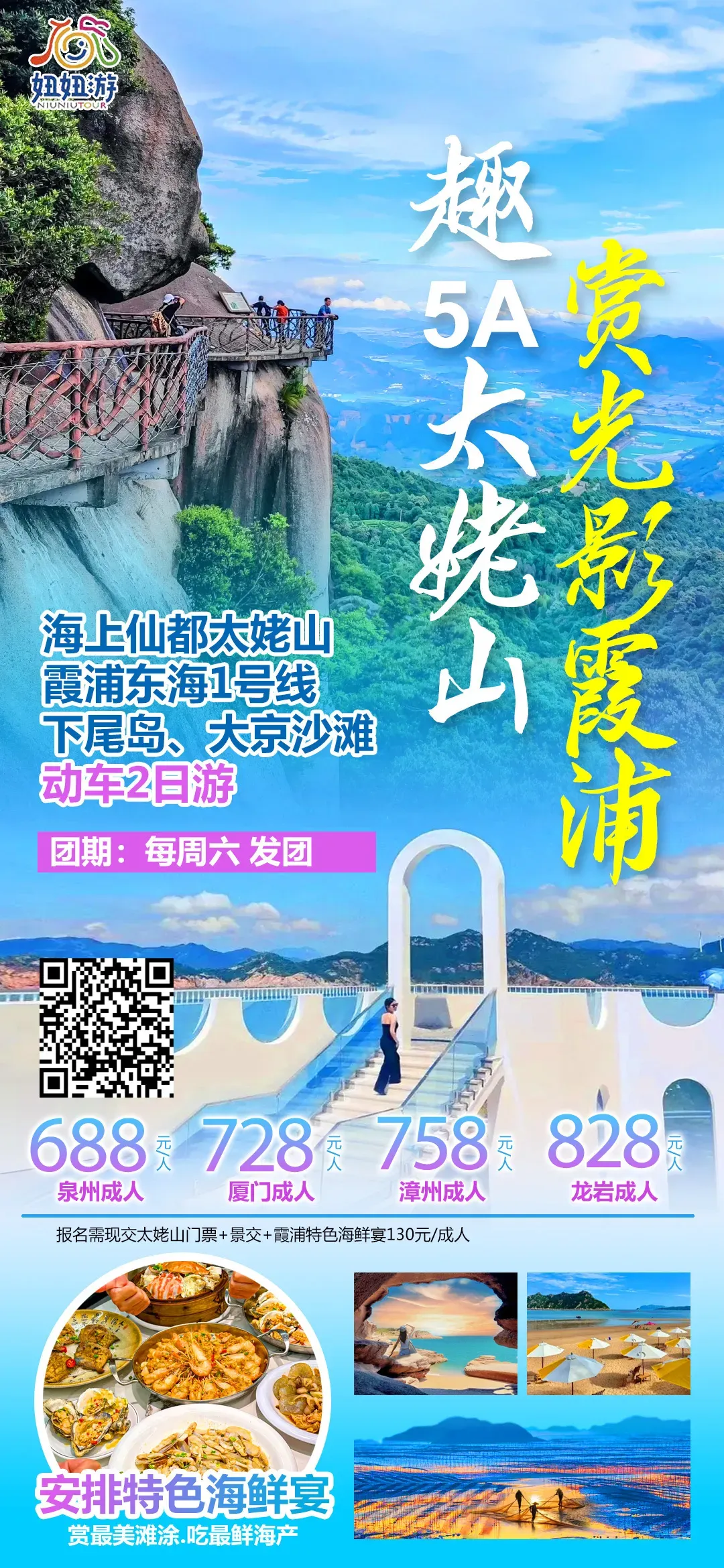 当前位置:首页>美女资讯>女神季『 趣5A太姥山~品特色海鲜宴』动车2日游¥688元起|海上仙都太姥山、霞浦东海1号线、风情下尾岛、大京沙滩nn