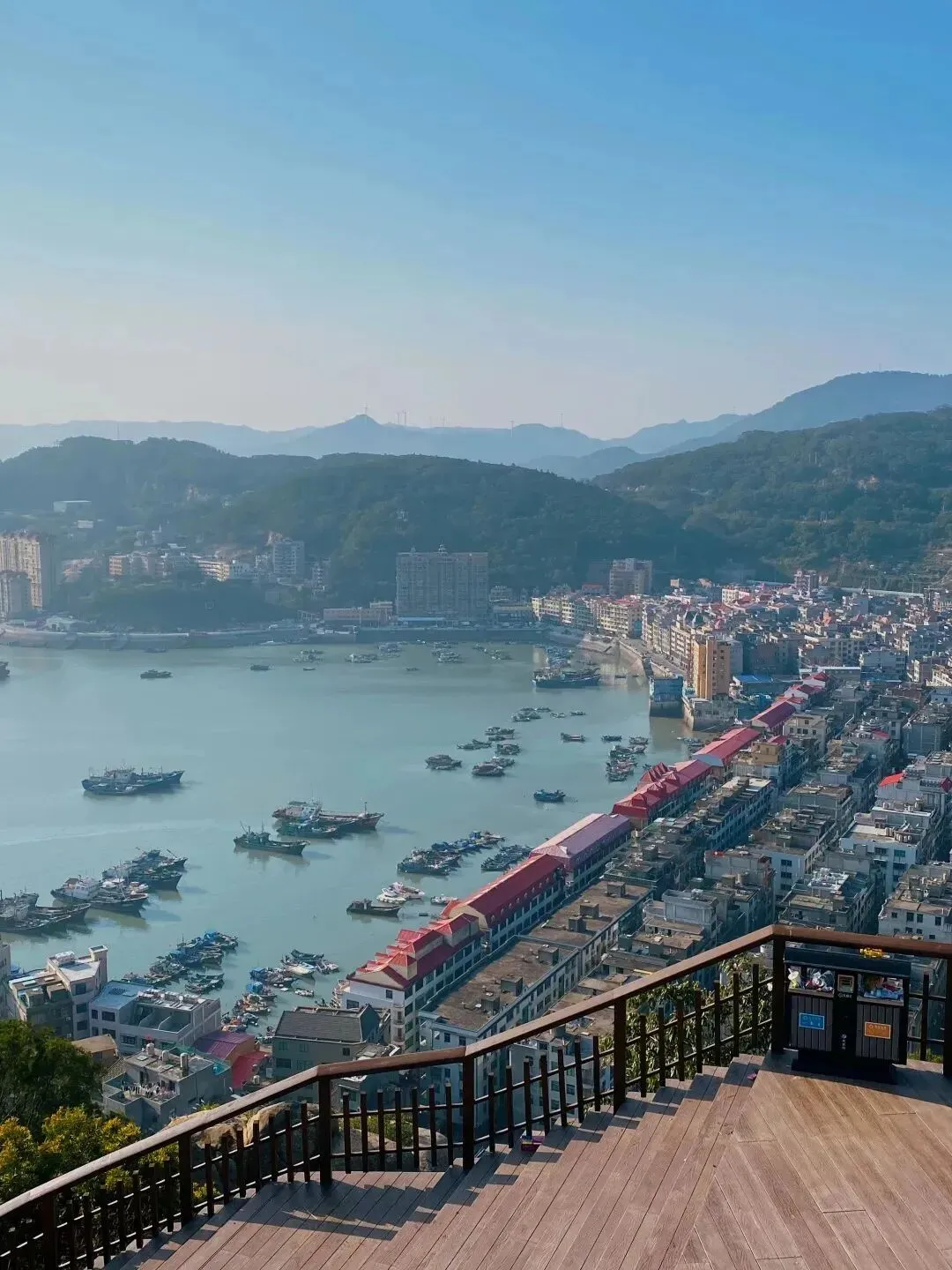 乘车前往摄影爱好者的天堂,欣赏日落的醉美渔村,鲍鱼养殖最多的奇达渔村】。奇达渔村独一无二的山海景观,泛着白沫的海水把海滩上的鹅卵石打磨得五彩斑斓,一张张渔网、一艘艘渔船打捞的是全家人的生计,还有餐桌上挑逗味蕾的美味。梦幻般的蓝色,耐人寻味的意境,引得人们无尽的遐想与向往。旗冠顶,海拔约450米,这里被誉为“福建版里约热内卢”,是俯瞰千年渔村与壮阔海上牧场的绝佳制高点。