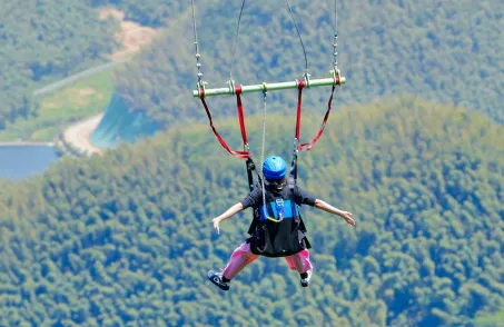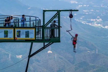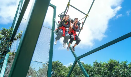 临崖而建、荡于1100米山巅的悬崖秋千,全新升级为悬崖秋千群。原双人悬崖秋千旁新增1个10米单人秋千、2个12米双人秋千,原单人悬崖秋千4米杆升级为6米,8座秋千。