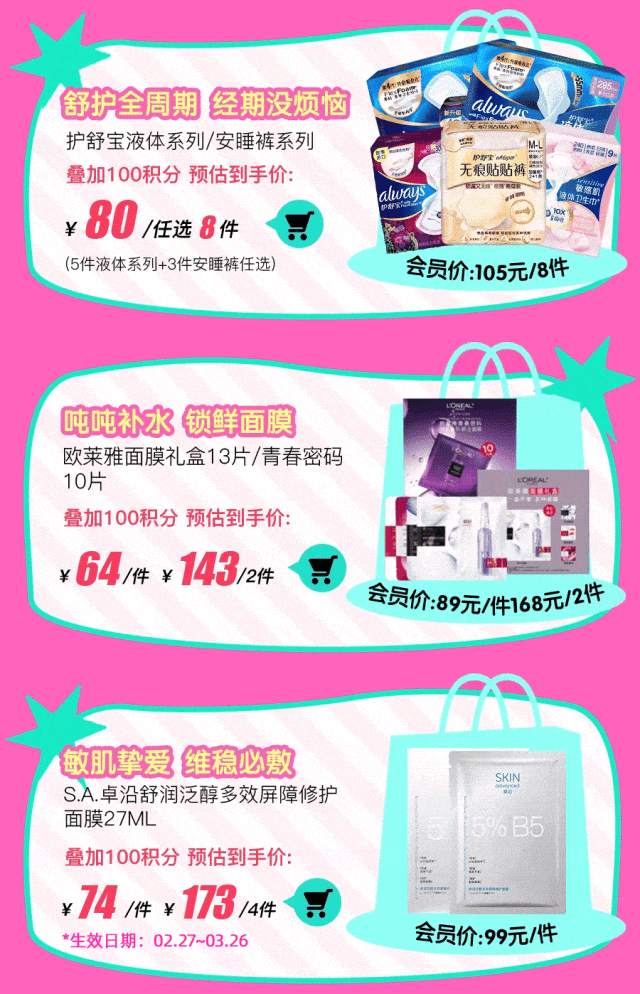当前位置:首页>美女资讯>屈臣氏丨3.8女神节 护舒宝¥80/任选8件 | 好价超给力!