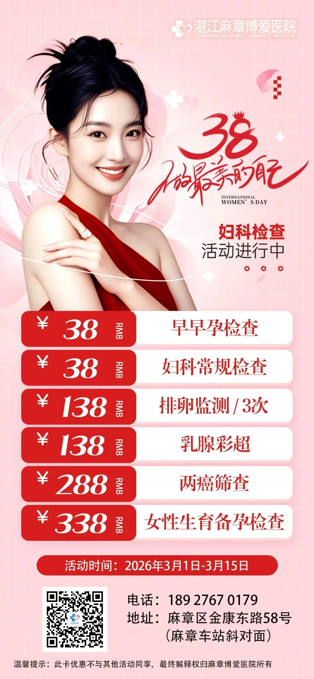 当前位置:首页>美女资讯>38 女神节 | 关爱女性健康,湛江妇科检查特惠