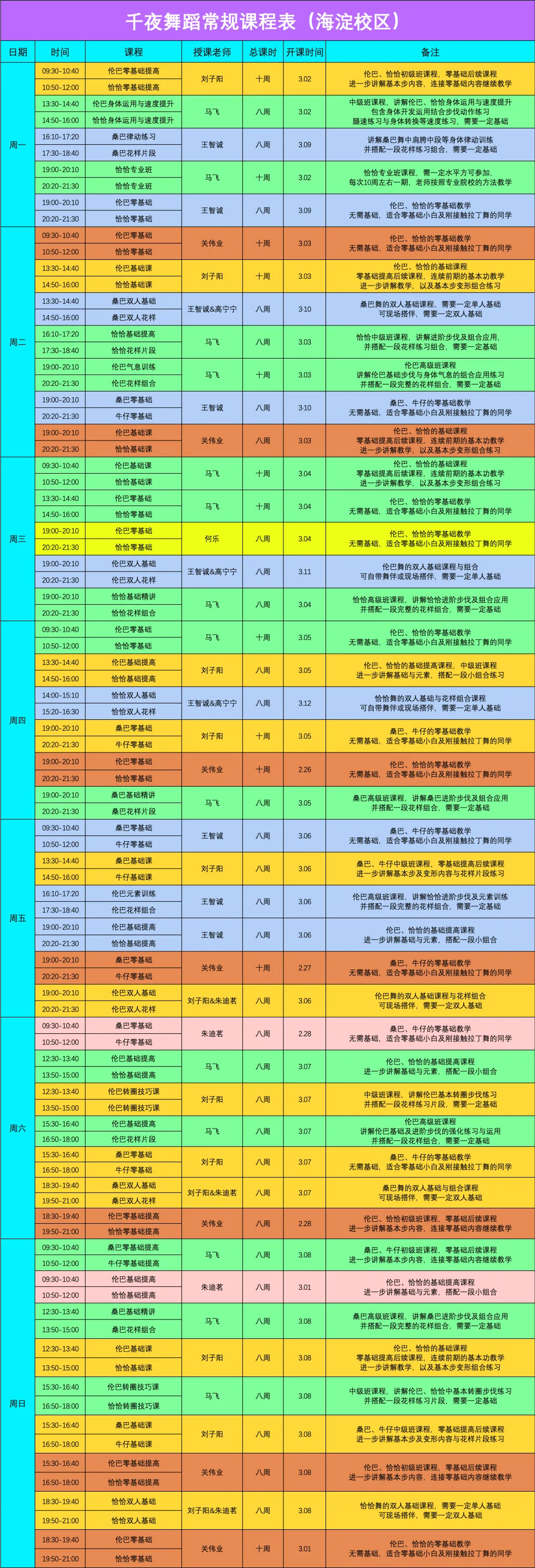二、拉丁次卡可以预约北京各个校区,包括摩登课,还可以刷进修班以及短期集训课,一卡多用,非常划算,且周一至周日早、下午、晚上均有课,可随时预约。
