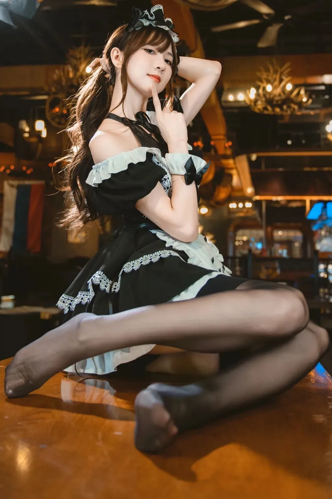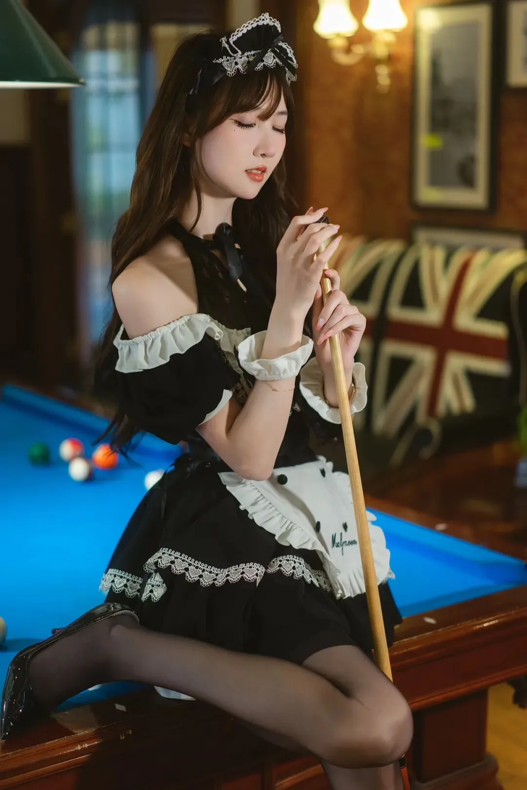 8 组复古酒吧女仆风写真姿势|从沙发到台球桌,拿捏甜酷氛围感