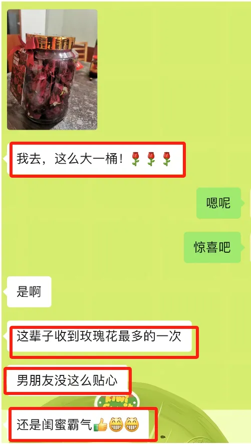 小编给闺蜜送了1罐,她说:收到抱在怀里特别大,这辈子收到最多玫瑰花的一次,男朋友都没这么贴心!