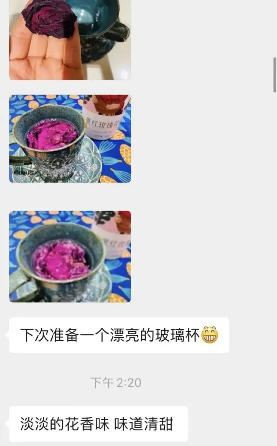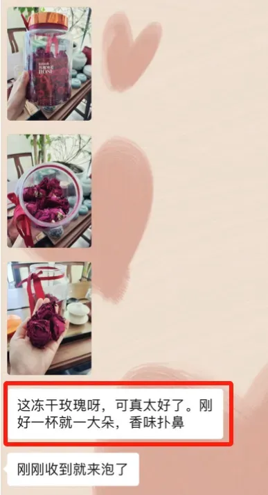 很多客户在品尝过墨红玫瑰花茶后,都赞不绝口,发来美美的买家秀~