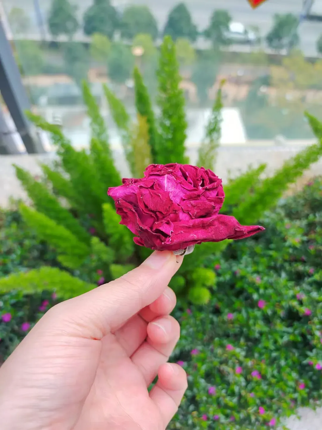 墨红玫瑰,法国引进,生长在云南大理。