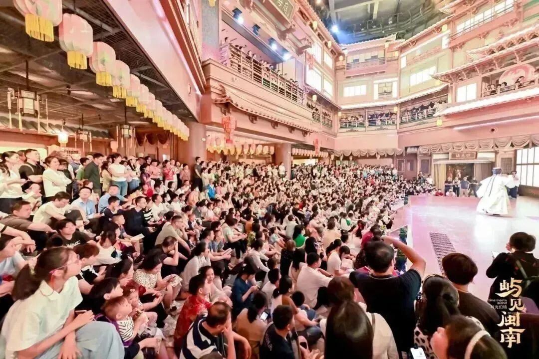 从晨光熹微到华灯初上,“屿见闽南”每日十余场演出轮番登场。其中,原创大秀《千年回响》人气飙升,五一期间因观众强烈呼声连演25场,现场观演超1万人次,线上线下好评如潮。