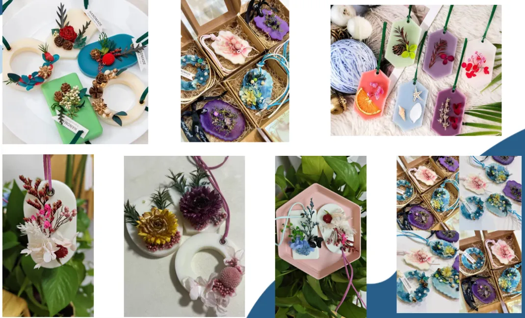 香薰蜡片,又叫植物香薰蜡片,一般是采用天然豆蜡、精油、干花或永生花制成的,主体材料是豆蜡,用天然豆蜡滴入精油,再加上漂亮的干花或永生花装饰,一份香薰蜡片就制作完成了。