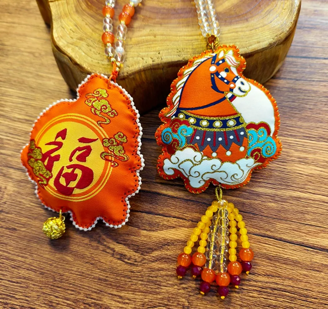 非遗宋锦葫芦挂件,以“福禄”为形,邀您体验简化版的传统技艺。您只需将精心准备的宋锦布料,沿弧度仔细贴合在葫芦底胚上,感受丝绸滑过指尖的温润;再巧妙排列固定,让百年锦绣纹样完美展现;最后缀以晶莹串珠与飘逸流苏。片刻功夫,一件蕴含千年织造智慧、承载吉祥寓意的精致挂饰,便在您手中诞生。