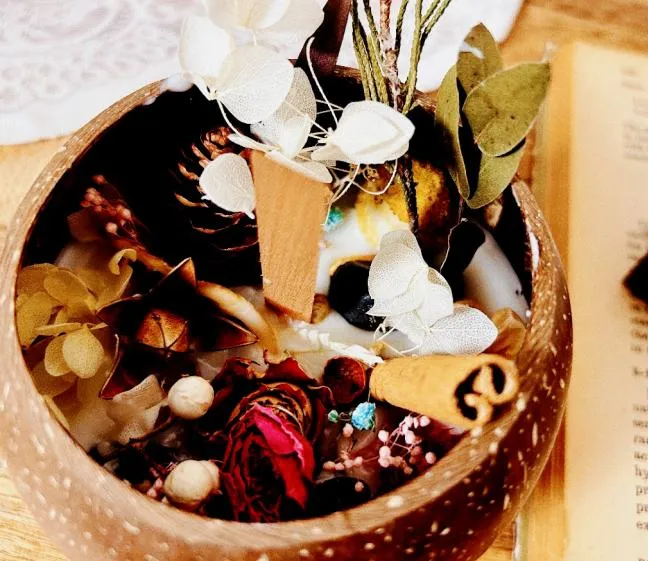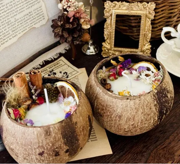 以天然椰壳为容器,搭配石膏、精油等,制作散发持久清香的玄关摆件。融合自然材质与宜人香气,创造属于自己空间的独特嗅觉印记。